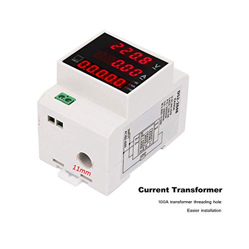 100A Contatore energia digitale su guida DIN,LED Voltmetro Amperometro Indicatore fattore di potenza attiva, Multimetro a corrente di potenza a doppio display ad alta precisione(AC80-300/100A)