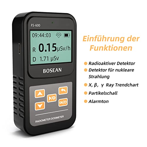 ❀ 【Funzione di misurazione e registrazione in tempo reale】 Il contatore Geiger ha un grafico di tendenza, suono di particelle, suono di allarme, suono di visualizzazione. Misurare il tasso di dose in tempo reale e registrare la dose cumulativa allo stesso tempo. La soglia di allarme del tasso di dose e l'allarme di dose la soglia può essere continuamente regolabile e impostata in modo arbitrario. Può visualizzare la data di inizio della dose cumulativa corrente.