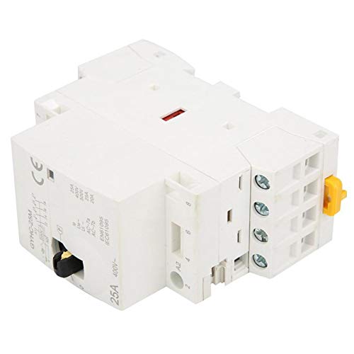 Contattore CA per Uso Domestico su Guida DIN 4P 25A 220V 50Hz Micro Contattore di Controllo del Circuito Universale con Interruttore di Controllo Manuale(4NO)