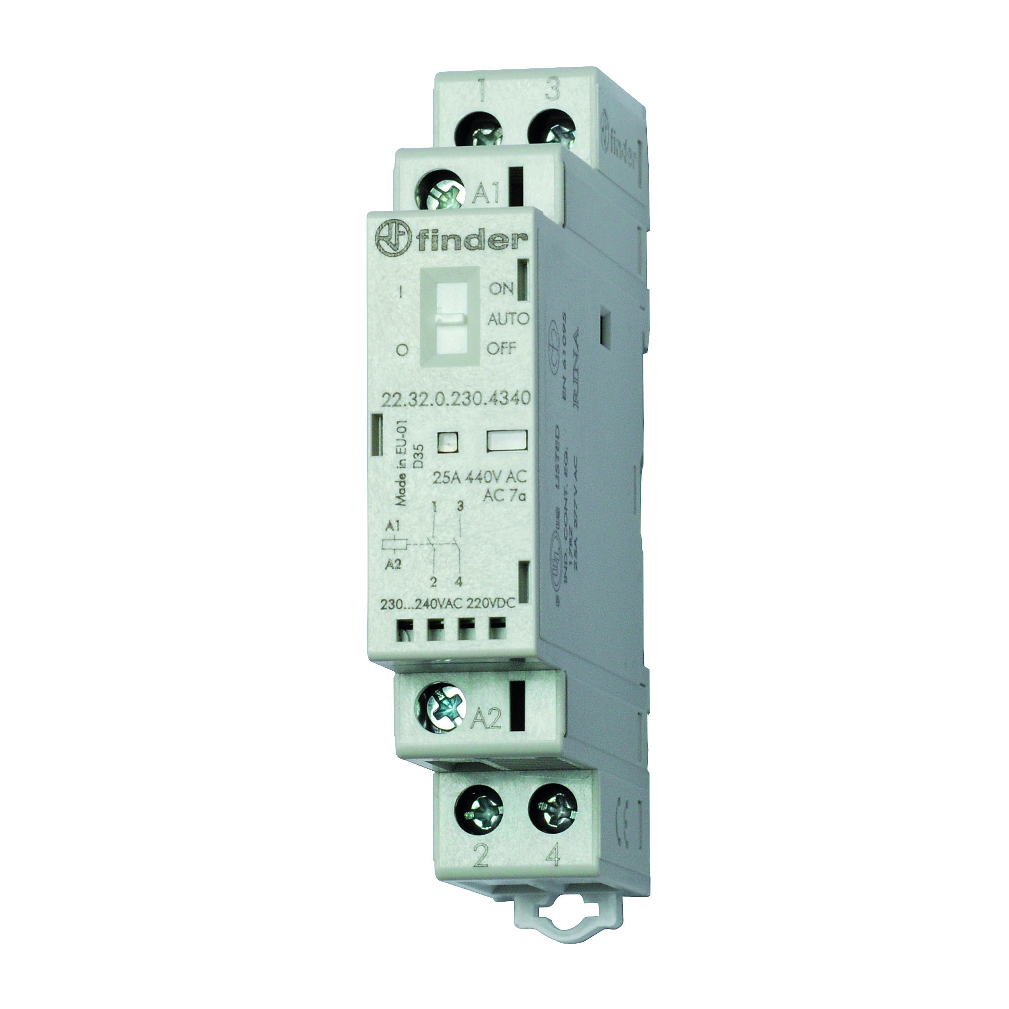 Indicatore meccanico + LED, Standard, 230...240 V, Tutti i contatti NO, 2 contatti, 25 A, AgSnO2, AC (50/60Hz)/DC, Contattore modulare, 25 A. Ideale per comandare luci in uffici, bagni, aule, gestire l'illuminazione pubblica (strade e parcheggi) e abilitare l'energia nelle camere degli hotel