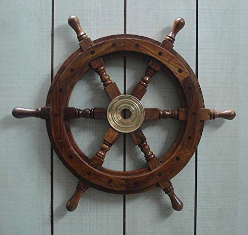 Codice SKU - B01CNPQ21U | Materiale - 100% palissandro massiccio e di prima qualità + ottone massiccio (mozzo centrale) | Vero artigianato con qualità reale | Decorazione da parete pirata nautica di prima qualità realizzata a mano