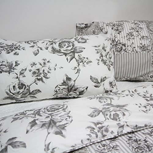 Just Contempo - Copripiumino Matrimoniale double-face in toile, in stile country francese, con motivo a righe e patchwork floreale, Policotone, pietra (grigio), Super King