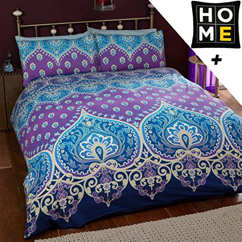 Just Contempo - Set Copripiumino con Motivo Marocchino, Purple Ethnic, Doppio