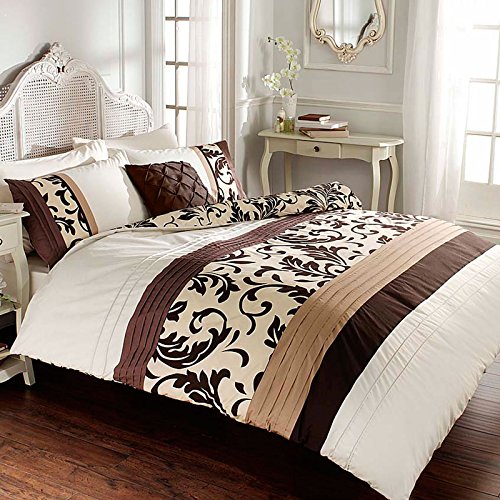 Just Contempo, Set Copripiumino, Tessuto Damasco, Piazza e Mezza, Colore Nero, Scroll Chocolate, Doppio