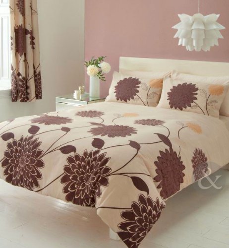 Just Contempo Lotus - Set con copripiumino motivo floreale stile moderno copripiumino matrimoniale ( Modern Room ) cioccolato & panna (marrone)