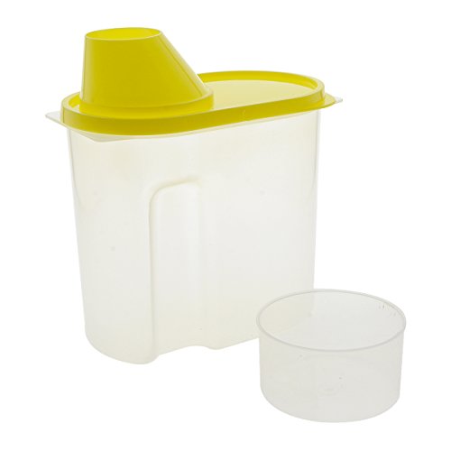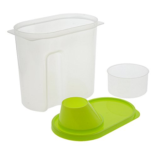 Saim, contenitore per cereali con beccuccio e dosatore in plastica trasparente, per alimenti, ermetico a tenuta stagna Cereal Keeper, contenitori per riso chicchi di grano cereali farina d' avena Sugar titanio, l, pezzi, plastica, green&yellow, 1.9L US
