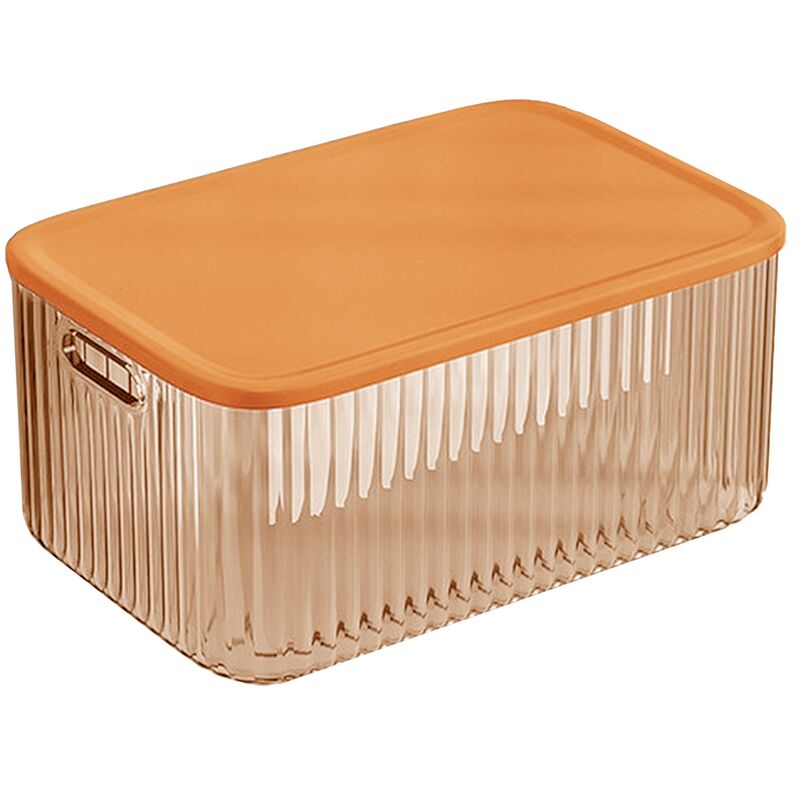Scatola portaoggetti con coperchio arancione 35x23,5x16,5x16,5 Salvaspazio, ideale per organizzare i vostri oggetti. Sfruttate al meglio il vostro spazio. Queste scatole hanno le dimensioni perfette per organizzare ogni tipo di oggetto. Sono dotate di asole come maniglie, per aiutarvi a trasportarle senza fatica. Realizzate in plastica resistente per una lunga durata.