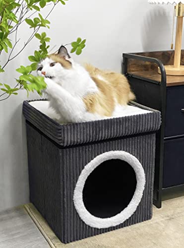 Pouf Contenitore Cubo Cuccia Pelosa per Gatti Cucce per Gatti da Interno Puff Sgabello Cuccia Gatto Chiusa Morbida Casa per Gatti con Cuscino Igloo per Gatti Lettino Gatto Pieghevole Grigio Scuro