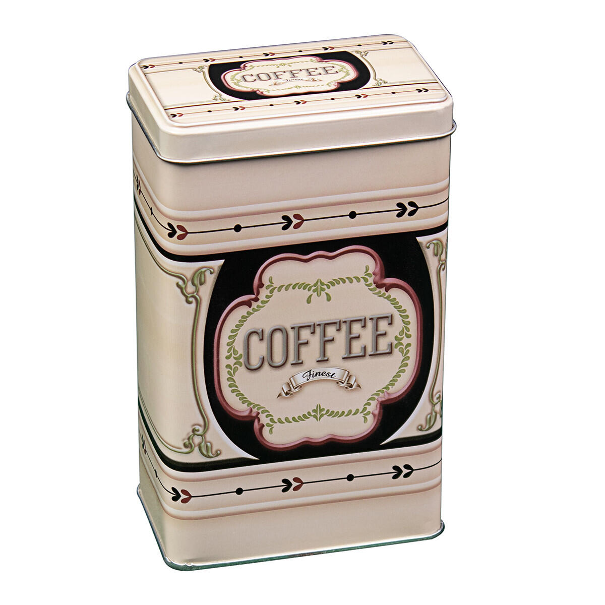 Scatola in latta color crema, rettangolare con decorazione vintage per il caffe'.