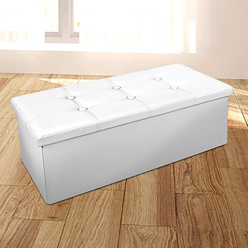 Pouf Contenitore Doppio In Ecopelle, Cassapanca Poggiapiedi Imbottita Contenitore Bianco
