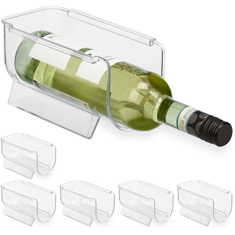 Ora puoi dire addio alle bottiglie che scivolano via dallo scaffale del frigo! Il pratico organizzatore ti permette di poggiare bottiglie e barattoli in posizione orizzontale, mantenendole al loro posto. Non solo le bottiglie non scivoleranno più, ma potrai usare in modo ottimale lo spazio nel frigorifero. La struttura trasparente ti permetterà di sapere sempre cosa è contenuto nel supporto. Se vuoi creare un vero e proprio sistema di organizzazione nella tua cucina, puoi impilare più contenitori insieme. Organizer da frigo in dettaglio - Dimensioni H x L x P: 10,5 x 11 x 20,5 cm ca. - Dimensioni interne H x L x P: 9,5 x 9 x 19,5 cm ca. - Peso: 150 g ca. - Materiale: plastica PET (libera da BPA) - Colore: trasparente - Set da 6 contenitori Scatola porta bottiglie per il frigorifero - Per riporre le bottiglie in maniera ordinata nello scomparto frigo - Pratico modo per ottimizzare lo spazio in cucina - Le bottiglie vengono riposte in maniera orizzontale - Per estrarre le bottiglie
