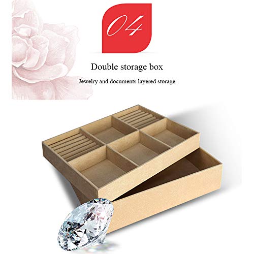 [Scatola di immagazzinaggio a doppio strato] L'interno del cassetto è realizzato in morbido tessuto per proteggere gli oggetti di valore da graffi. La scatola di immagazzinaggio a doppio strato è progettata per essere stratificata e conservata a colpo d'occhio.
