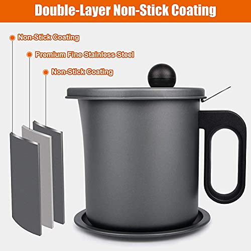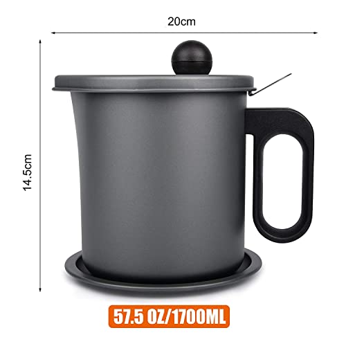 Filtro a rete fine - capacità 1,7 L con filtro a rete super fine, facile separare i pezzi di cibo dall'olio da cucina. Inoltre, È possibile filtrare e conservare succhi di frutta, zuppe, succhi di frutta e così via. Può risolvere la maggior parte delle esigenze di stoccaggio del liquido della cucina.
