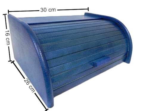 Contenitore per il pane in legno con chiusura a serranda per conservare il pane in cucina, Legno, Blue, small