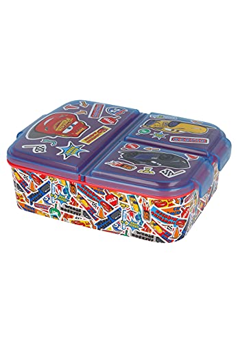 Cars - Contenitore per il pranzo per bambini, con 3 scomparti + adesivo per nome