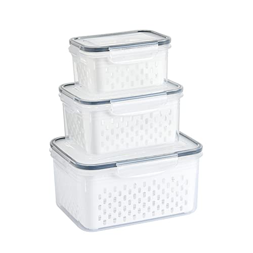 Barattolo di conservazione a doppio strato: il contenitore dispone di un cestino di scarico integrato per filtrare l'umidità dalla superficie di frutta o carne e può essere utilizzato anche come filtro per filtrare l'acqua. Il coperchio ermetico evita gli odori e mantiene il cibo fresco.