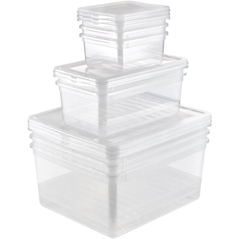 Per una casa e un armadio ordinati: Box contenitori trasparenti con funzione di ventilazione opzionale - Ideale per riporre e ordinare piccoli oggetti, accessori, decorazioni e capi d'abbigliamento Air Control System brevettato: ventilazione permanente opzionale o protezione dalla polvere ruotando il coperchio di 180 gradi - Ideale per capi in pelle o articoli sportivi Bordo rialzato del coperchio per impilare in sicurezza, Contenuto visibile su tutti i lati, Contenitori impilabili l'uno sull'altro: i bordi inferiori si incastrano con il coperchio sottostante, Chiusure a scatto sul coperchio Prodotto in Europa - 10 anni di garanzia del produttore, Plastica resistente e di alta qualità (PP), Senza BPA né plastificanti, Nessun rilascio di sostanze nocive, Facile pulizia con un panno umido o una spugna Contenuto: 1 Confezione da 8 Box Contenitori, Bea, 30050, 3x 1,7 L (Dimensioni: 19,5 x 16,5 x 8,5 cm), 2x 5,6 L (Dimensioni: 33 x 19,5 x 12 cm), 3x 18 L (Dimensioni: 39 x 33,5 x 18 cm)