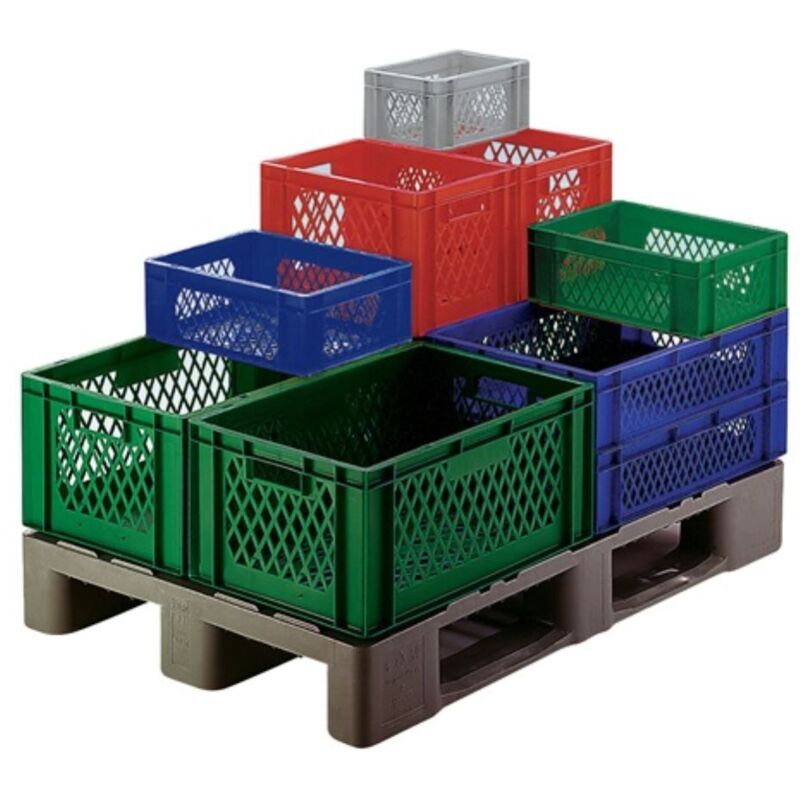 In polipropilene · alimenti sicuri · per il trasporto, lo stoccaggio, lo smistamento, ecc. · le dimensioni della scatola sono abbinate alla dimensione del pallet 1200 x 800 mm · Pavimento chiuso, pareti laterali infrante Altre caratteristiche tecniche: · Pareti laterali: traslavoro · Altezza interna: 255mm · Lunghezza interna: 356mm · Larghezza interna: 255 mm