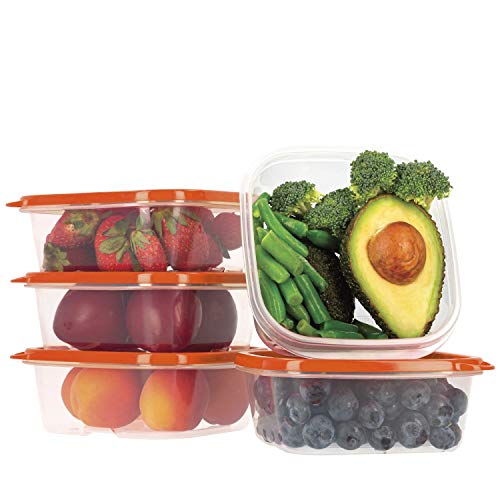 Set di Contenitori Alimentari Ermetici, 5 Pezzi x 400ml(5contenitori e 5coperchi), Salvafreschezza in plastica senza BPA, con coperchio Arancione, Adatto per lavastoviglie, Congelatore, Microonde