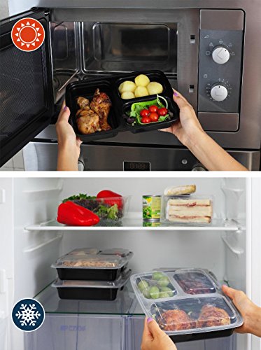 Contenitori Alimentari a 3 scomparti [10-confezione], Meal Prep Containers da utilizzare come Bento Box, Contenitori di plastica per alimenti, BPA-free, Impilabili, adatti per Freezer, Lavastoviglie e Forno a Microonde, Contenitore per il pranzo con divisori per il controllo delle porzioni