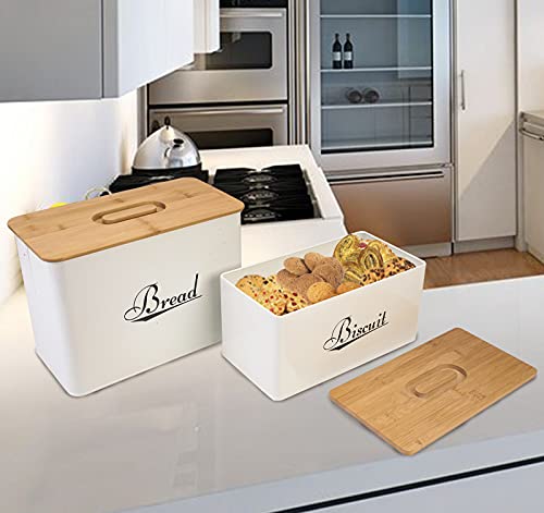 ▶ Un pratico set di contenitori per il pane e i biscotti: il coperchio in legno di bambù può essere utilizzato anche come robusto tagliere, rendendo questo elegante portapane bianco e la scatola per biscotti una scatola multifunzionale.