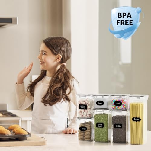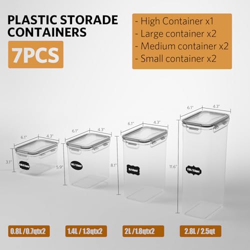 Contenitori Ermetici per Alimenti 7 Pezzi Plastica con Coperchio, Senza BPA, per Pasta, Organizer Cucina Dispensa per Alimenti Secchi, Farina e Zucchero, Etichette,Cucchiaio