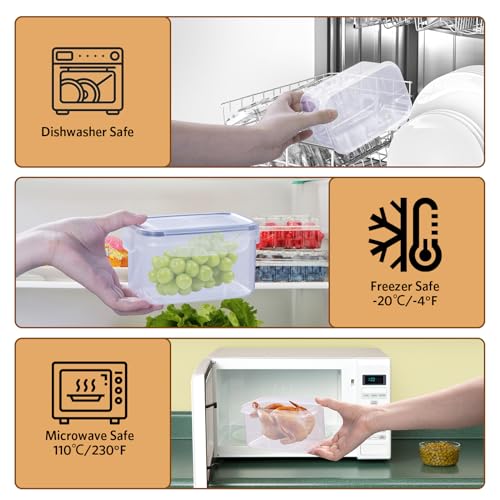Contenitori per alimenti senza BPA: rispetto ai contenitori in vetro per alimenti, i contenitori HUAXUN con coperchio sono ermetici, leggeri e infrangibili. Realizzati in robusta plastica alimentare, senza BPA, sicuri e durevoli. Resistenti a temperature da -20°C a 100°C, sono adatti al frigorifero, al microonde e alla lavastoviglie per una pulizia facile e veloce (consiglio: i coperchi non sono adatti al microonde;