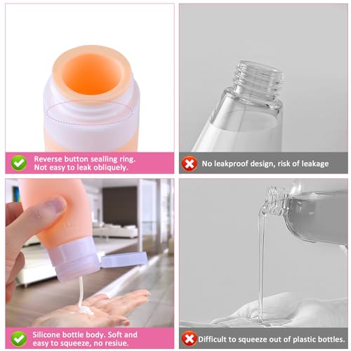 Materiale Sicuro: Le mini size da viaggio prodotti sono fatte di materiale siliconico sicuro e morbido. Il viaggio delle bottiglie in silicone è senza bpa, ricaricabile e riutilizzabile, super resistenza alla compressione.