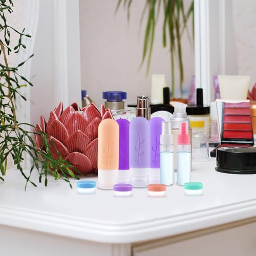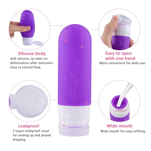 Contenitori Viaggio Liquidi, Vexillic 15 Pezzi Kit Viaggio Liquidi Bottiglie Silicone Riutilizzabili Aereo Flaconi da Viaggio 90ml per Shampoo, Lozione, Risciacquo, Gel Doccia(Viola)