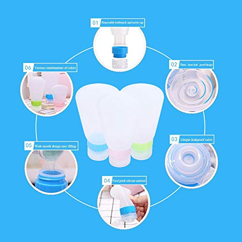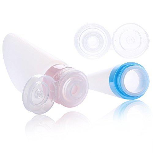 Contenitori da Viaggio in Silicone per Shampoo, Bagnoschiuma e Cosmetici, ottimo per viaggio in aereo, palestra, piscina (3 flaconi da 89 ml + 2 jar)