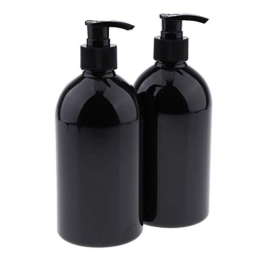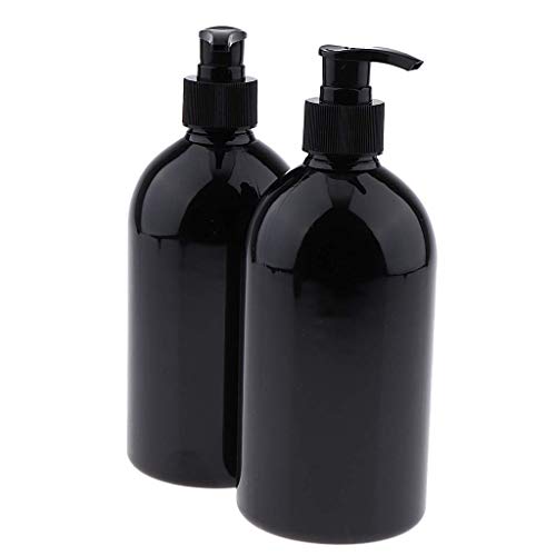 2 contenitori vuoti rotondi da 500 ml per dispenser bottiglie marroni per sapone liquido fai da te, shampoo, bagnoschiuma, lozioni, oli essenziali. - Pompa nera, come descritto AOD (pompa nera)