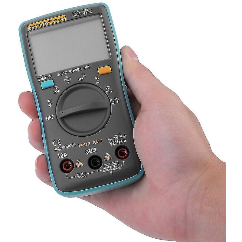 Caratteristiche:Mini multimetro digitale 6000 conteggi, design compatto.Multimetro superiore, ideale per elettricisti, hobbisti e professionisti, uso esteso per la risoluzione dei problemi elettrici automobilistici, domestici e industriali.Indicatore di bassa tensione.Misure principali: tensione AC /DC, AC/ Corrente CC, resistenza, capacità, test diodi e continuità, temperatura, frequenza e ciclo di lavoro.Protezione da 550 V nelle gamme di resistenza, capacità e frequenza, integrità e sicurezza avanzate del misuratore termico, Angoli rinforzati per protezione contro le cadute.Facile da trasportare quando si è lontani dal lavoro e molto comodo da tenere quando non in uso.Lo schermo LCD retroilluminato consente di utilizzare il misuratore in condizioni buie o difficili.bassa illuminazione, non interferisce con le letture.Lo spegnimento automatico può essere ignorato manualmente.Specifiche: Colore: Grigio Materiale: Plastica Display massimo: 6 p;