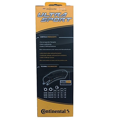 Continental Ultra Sport II - Pneumatico pieghevole per bici da strada, PureGrip Compound (23c, 25c, 28c, 32c)