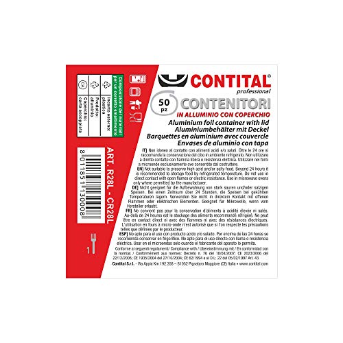 CONTITAL Contenitori in Alluminio R28L con coperchio, 1 Porzione, Vaschette monouso Linea Professionale - 50 pezzi