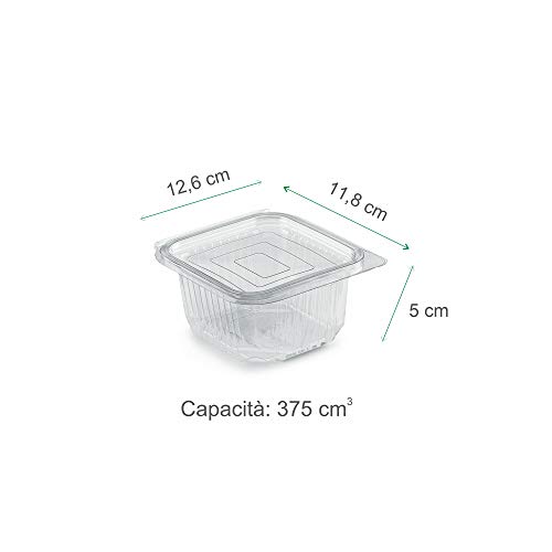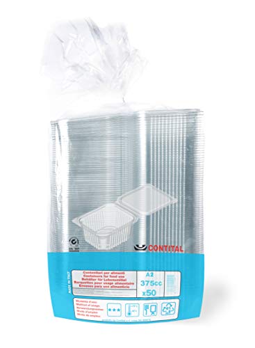 CONTITAL Contenitori in PET A02 - Vaschette Rettangolari 375 cc monouso per Alimenti con coperchio, 100 pezzi