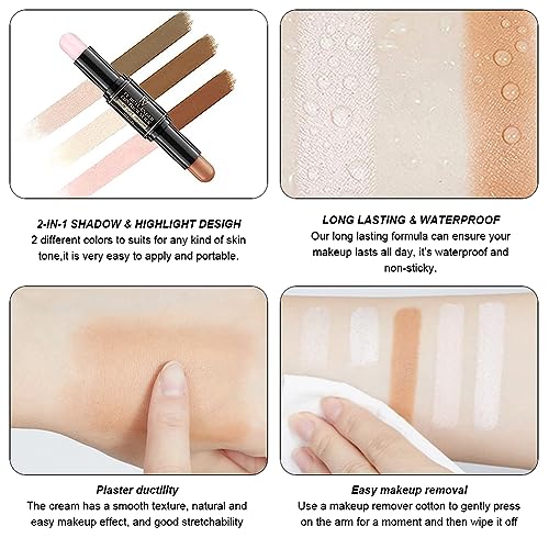 Highlighter Stick: La nostra matita evidenziatore e contouring bifacciale ha una texture cremosa che copre facilmente i contorni. Fornisce una copertura a lunga durata in una formula naturale in 3D che applica il trucco del viso per il contouring.