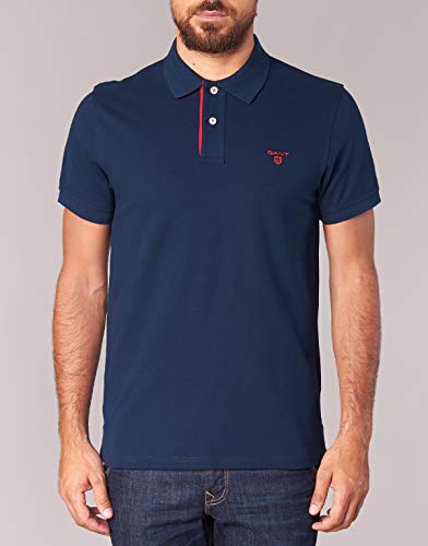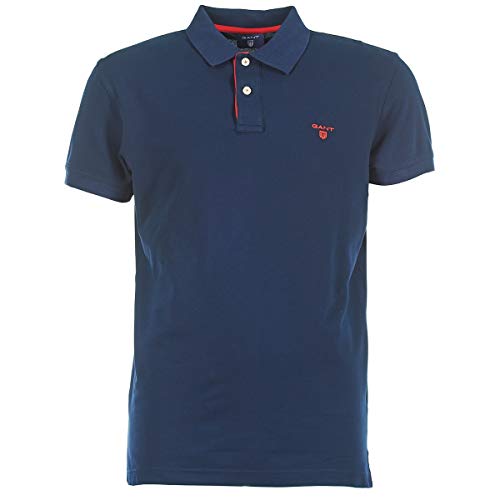 GANT - CONTRAST COLLAR PIQUE SS RUGGER, Polo da uomo, blu (Blau (EVENING BLUE 433)), Large