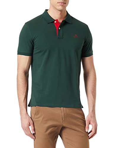 GANT CONTRAST COLLAR PIQUE SS RUGGER, Polo Uomo, Verde ( STORM GREEN ), XS