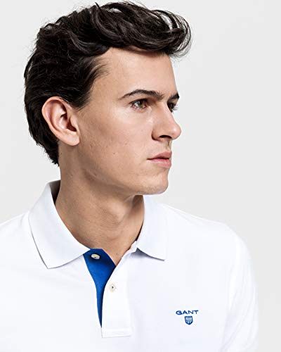 GANT Contrast Collar PIQ SS Rugger Polo, Bianco (White 110), Large Uomo
