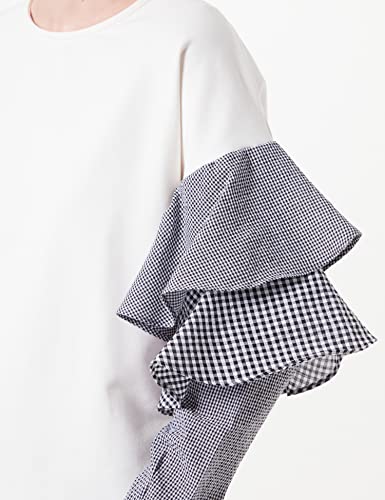 Find. Contrast Ruffle Sleeve, Maglia a Maniche Lunghe Donna, Avorio (Ivory), Medium