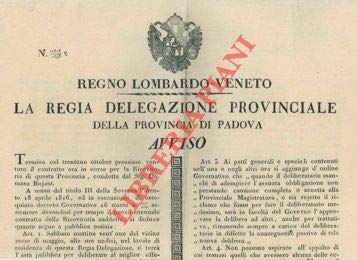 Asta per il contratto per la Ricevitoria Provinciale di Padova