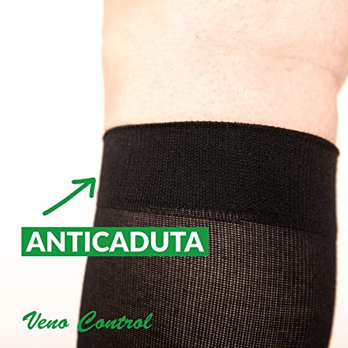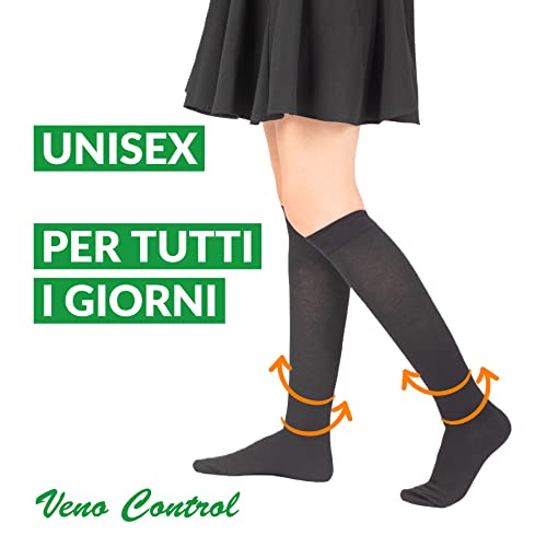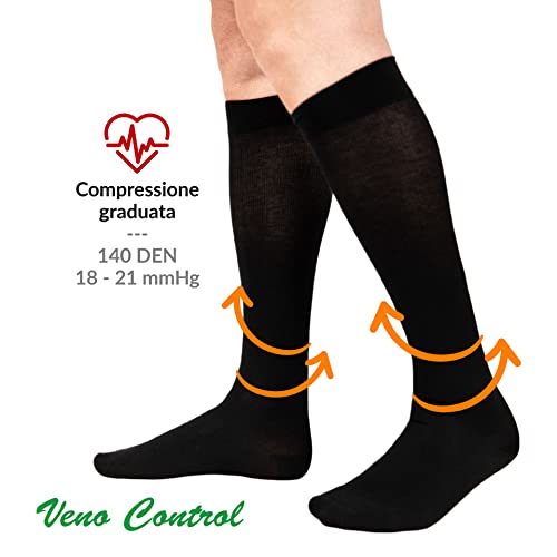 VENO CONTROL Gambaletti Elastici Unisex Adulto 140 Den, Compressione Graduata 18-21 mmHg, Made In Italy, Misura 5, Piede 44-45, Nero