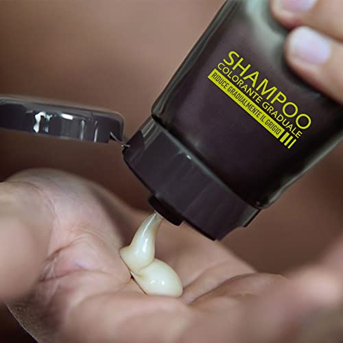 Lo Shampoo Colorante Graduale per uomo riporta i capelli bianchi al loro colore naturale in modo semplice e veloce. Non cambierai improvvisamente il tuo look, perché con ogni lavaggio ridurrai gradualmente i capelli bianchi