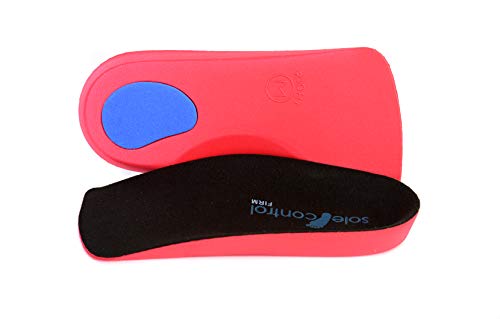 Sole Control - Solette plantari lunghezza 3/4 con sostegno plantare rigido e cuscinetto per il tallone, per piedi piatti, cedimento della volta plantare, pronazione e fascite plantare, rosso rosso/nero 11-13 / UK XL