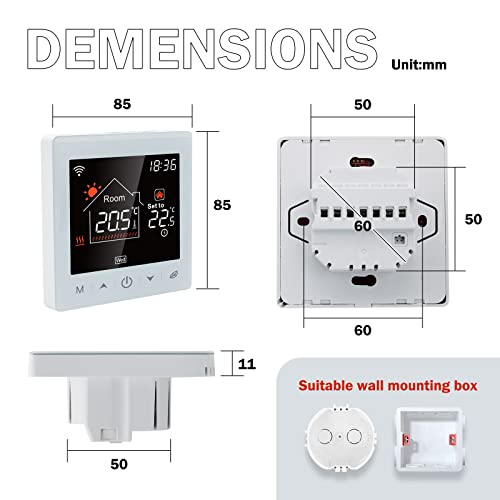 COMPATIBILE: il termostato Beok funziona perfettamente con la maggior parte dei sistemi di riscaldamento o delle apparecchiature con alimentazione CA 200-240 V 50/60 Hz, carico corrente 3 a max, con sensore aria.