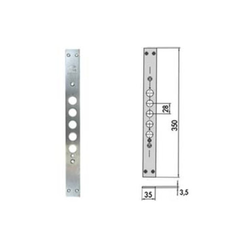 Mm.35x350, spessore mm.3,5 (0622101) testata in acciaio nichelato - interasse catenacci mm.28 - adatta per serrature cisa serie: 56500. Categoria merceologica: Serrature, chiusure di sicurezza e accessori - Sicurezza - Contropiastre e frontali per serrature