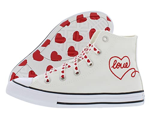 Converse Chuck Taylor CTAS - Scarpe sportive unisex per bambini, in materiale sintetico, alte, Bianco (Vintage White University Red Black Heart), 33 EU