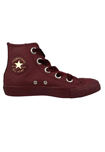 (B) Modello: Chuck Taylor All Star Big occhielli HI Fodera: Tessile superiore: Pelle sottopiede: tessile suola: gomma serratura: allacciatura