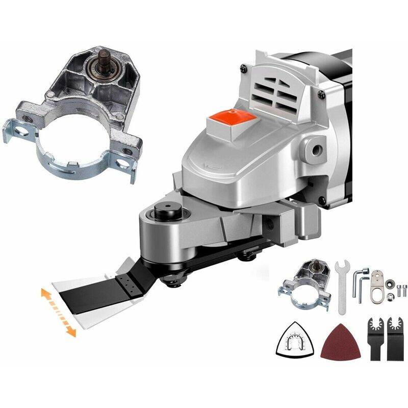 KIT DI CONVERSIONE DA SMERIGLIATRICEANGOLARE AD UTENSILE OSCILLANTEMULTIFUNZIONE.COMODISSIMO KIT DA MONTARE SU SMEGLIATRICIANGOLARI DA 115/125 mm ( PASSO M14 ) PER CONVERTIRLE AD UTENSILE OSCILLANTE MULTIFUNZIONE.IL MOVIMENTO OSCILLANTE PERMETTE DI TAGLIARE COMODAMENTE MATERIALI VARI E IN SITUAZIONI SCOMODE DOVE NON ARRIVEREBBE UN TRADIZIONALE UTENSILE ROTATORIO CON LA MASSIMA COMODITA'.IL KIT COMPRENDE OLTRE AL CONVERTITORE:UN PLATORELLO TRIANGOLARE PER L'UTILIZZO DIFOGLI DI CARTA VETRATA A DELTA CON FISSAGGIOA STRAPPO DI MISURA 90 mm X LATO,( 2 FOGLI IN DOTAZIONE )2 LAME PER IL TAGLIO DI LEGNO, PLASTICA, CEMENTO,CARTONGESSO ECC. DI LARGHEZZA 20 E 35 mm.CHIAVI DI MONTAGGIO INCLUSE.