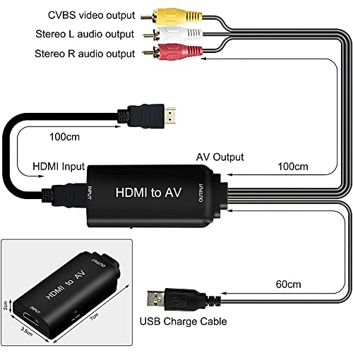 Cavo adattatore da HDMI a RCA 2022. Questo cavo convertitore da HDMI a RCA è una versione aggiornata sul mercato oggi con design integrato migliorato. L'adattatore da HDMI a RCA ha un cavo RCA (rosso, bianco, giallo) e un cavo di alimentazione USB, inoltre è incluso anche un cavo HDMI, non è necessario acquistare un cavo aggiuntivo. Per risparmiare ancora più tempo ed energia, un set completo di accessori offre un elevato comfort.